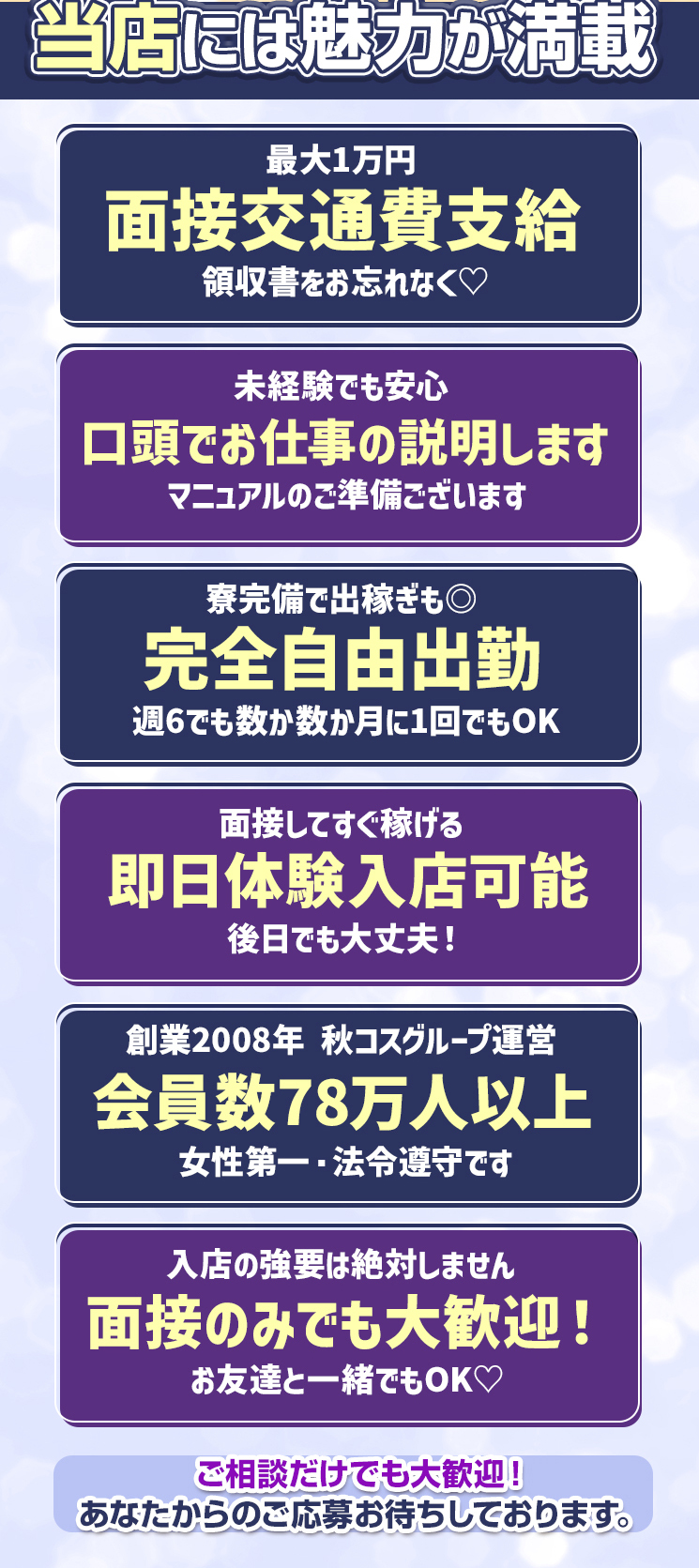 ランキング総ナメの当店はお客様が大変多く、女の子が足りません。ぜひ一緒に稼いでみませんか?