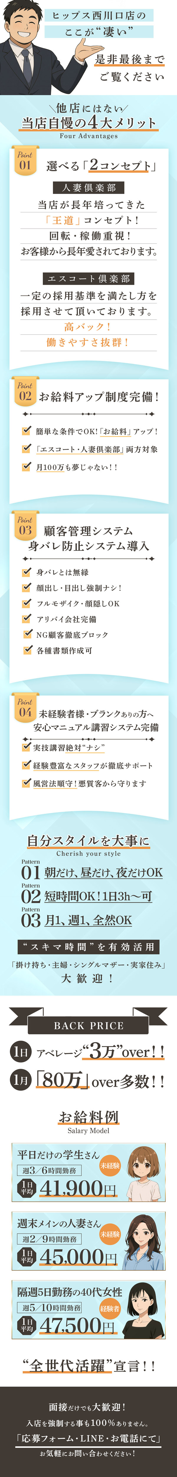 日給35,000円以上 ◆入店初月度はここからスタートです。※雑費等一切なし。手取り金額です。 90分 9,000円 120分 12,000円 150分 15,000円 180分 18,000円 ◆本指名ポイントクリアで・・・ ※雑費等一切なし。手取り金額です。 90分 10,000円 120分 14,000円 150分 17,500円 180分 21,000円 |
