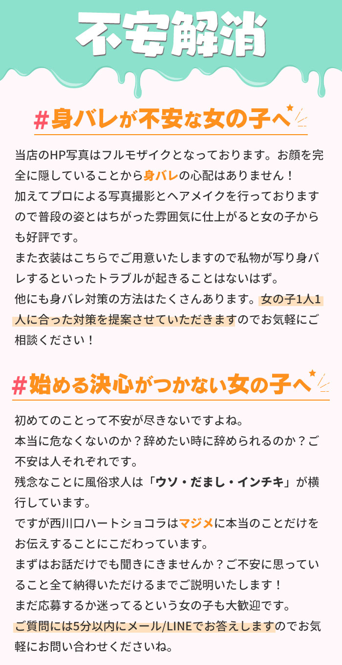 「西川口ハートショコラ」は首都圏で約40店舗展開するシンデレラグループが経営するどこよりも安心・安全・快適に働けるオナクラ店です!