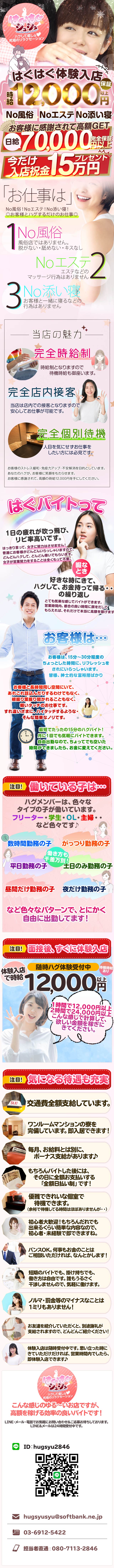 はぐはぐ体験入店=時給12,000円以上!日給7万円完全保証!入店祝金15万円支給♪