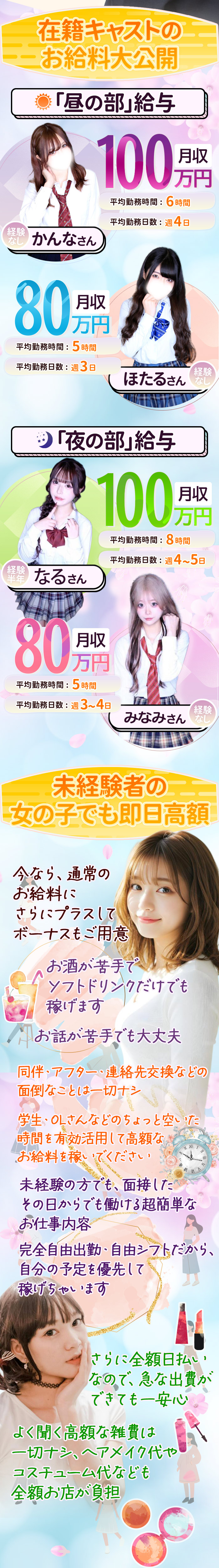 - 帰る時は全額現金でお持ち帰りください! ノルマ・罰金などのマイナスなことは一切ありません!