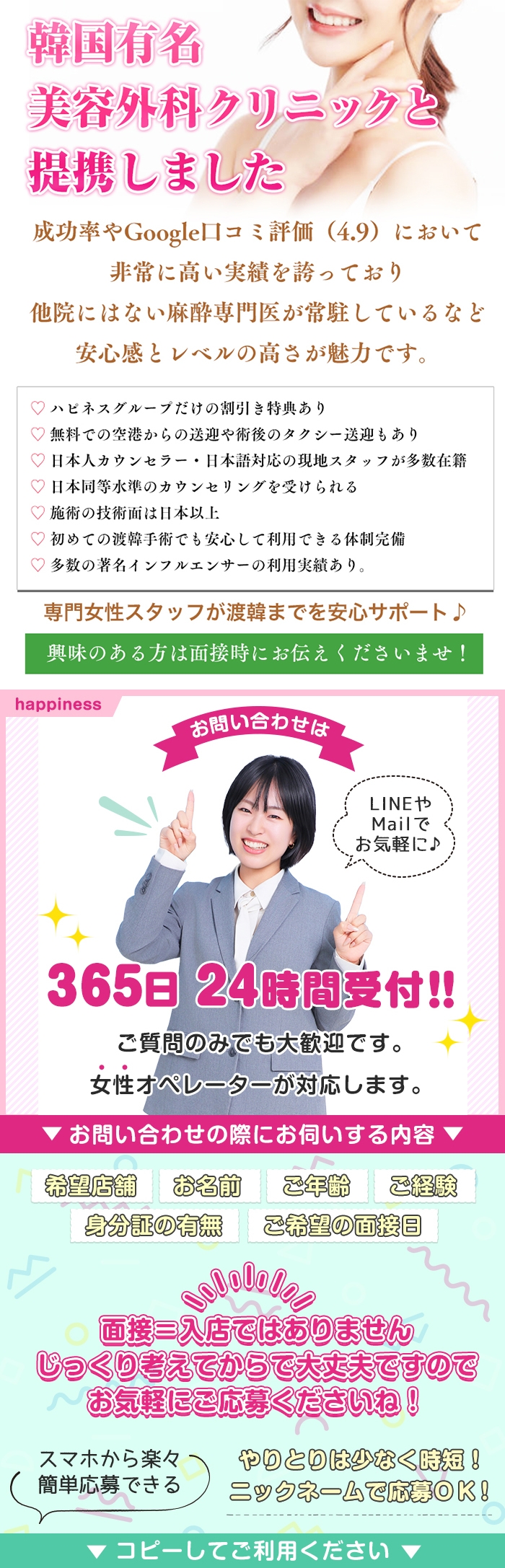 ◆女性スタッフが在職しているので安心♪ ◆全額日払い制 ◆今だけ!高級寿司コース無料プレゼント ◆面接交通費あり! ◆初心者大歓迎 ◆1日体験入店、お店見学だけでもOK! ◆交通費支給!必ず領収書をお持ちください! ◆出張面接をご希望の場合はお気軽にご連絡ください。 出稼ぎを検討している方はコチラ!! 【https://recruit.happiness-group.com/jobinfo/migrant】 |