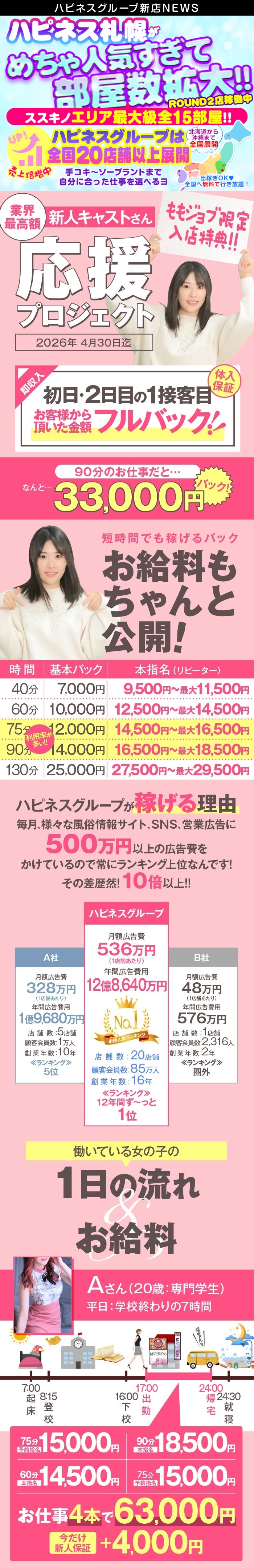 身バレ対策はバッチリですので地元の女の子もぜひ『ハピネス札幌』へ!