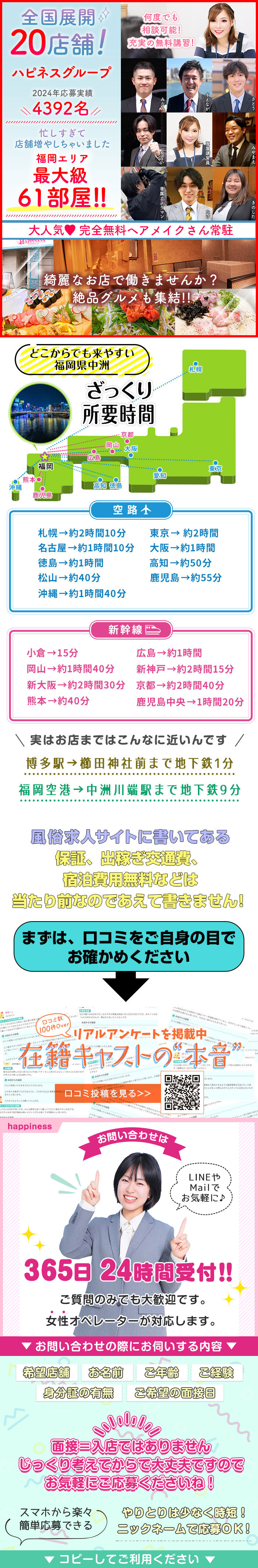 ・毎月衛生検査必須店 ・完全ラバー着用店 ・シフト完全自由 ・完全個室 ・無料ヘアメイクあり ・出勤時間に応じた金額保証実施中 ・完全個室待機 ・完全日払い ・ノルマ罰金一切なし ・宿泊場所無料手配有(毎週定員有) ・交通費支給 ・かけもちOK ・制服、靴、仕事道具貸与 ・送迎有り |