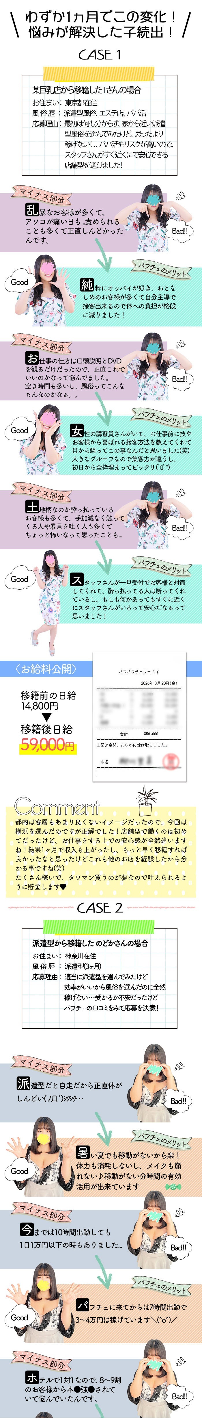 胸が大きい女の子が活躍出来る! しかも誰でも安心のソフト店♪ 「はじめて」でも「経験はあるけど、ハード店はちょっと…」って方にオススメです。 |