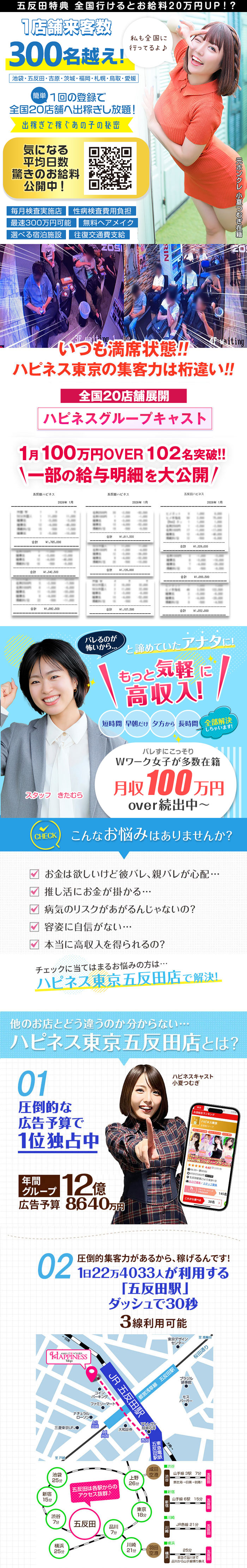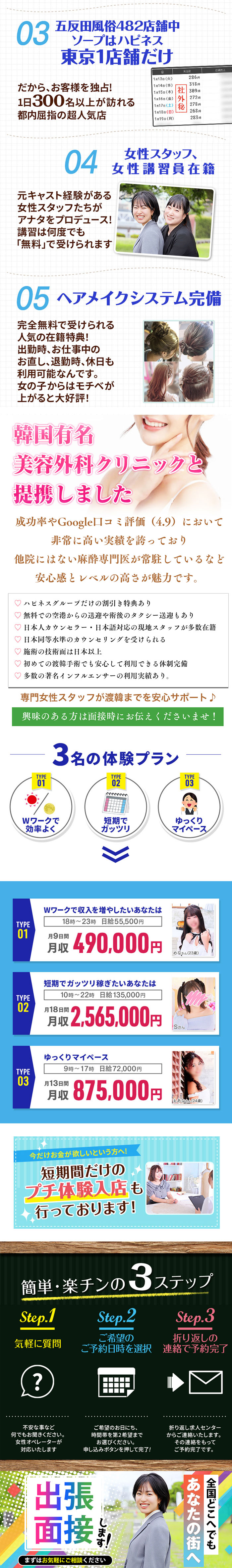 ハピネス東京は【絶対に満足して頂ける収入】と【充実の待遇】を全ての女の子にお約束致します。